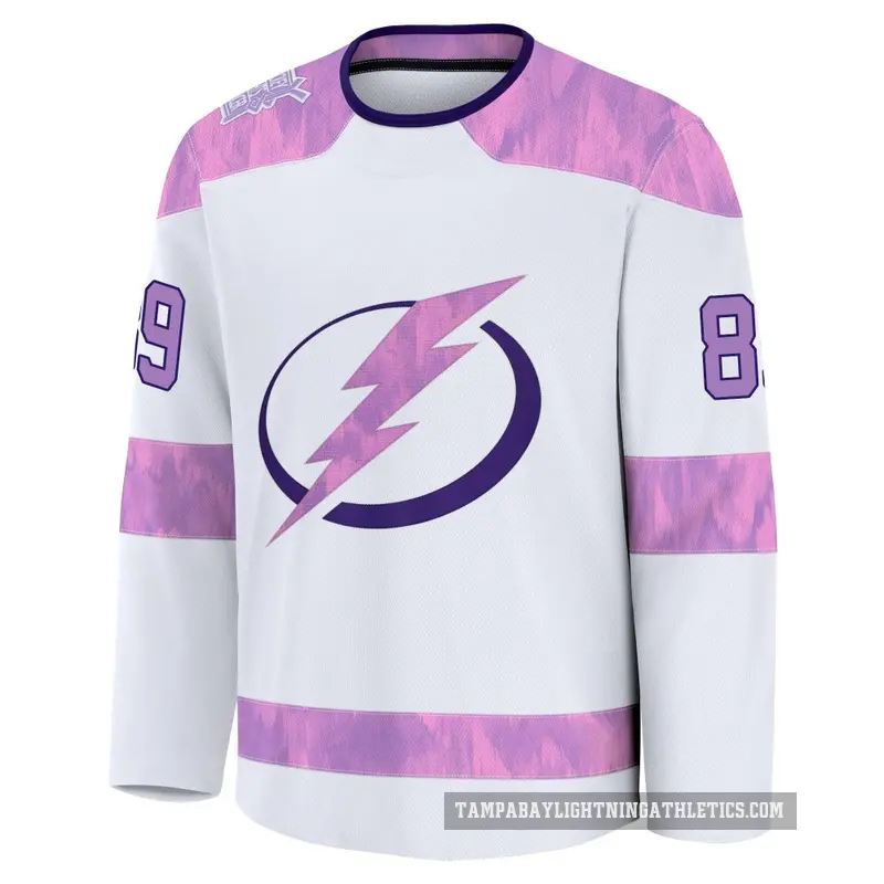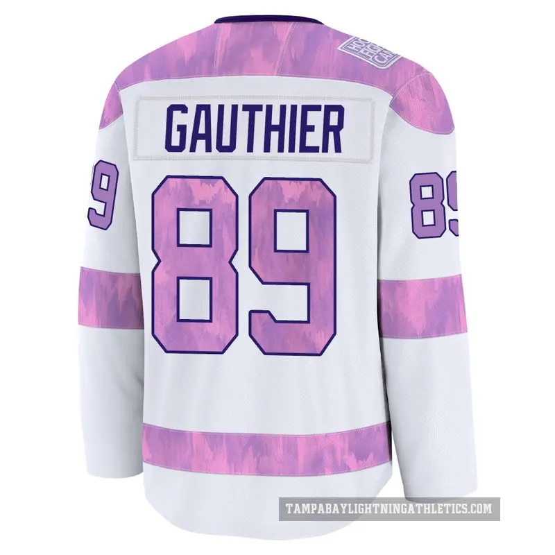 Cheer on the Tampa Bay in true style with this Men's Ethan Gauthier Tampa Bay Lightning #89 Premium White 2024 Hockey Fights Cancer Practice Jersey. Designed for devoted fans, it mirrors the look your team wears on the ice and delivers the authentic game-day feel every supporter needs.